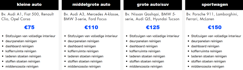 Een interieur detail zorgt voor een grondige reiniging van je auto-interieur. Stoelen, vloermatten, dashboard en meer worden volledig gereinigd voor een frisse, schone uitstraling en comfort!